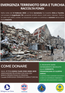 EMERGENZA TERREMOTO SIRIA E TURCHIA, RACCOLTA FONDI per la Comunità Francescana di Aleppo (Siria).